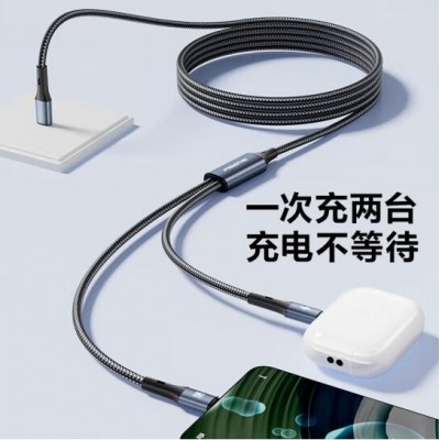 品胜双Type-C数据线二合一PD60W充电线一拖二车载适用苹果iPhone16pro/15/14手机华为70小米笔记本ipad